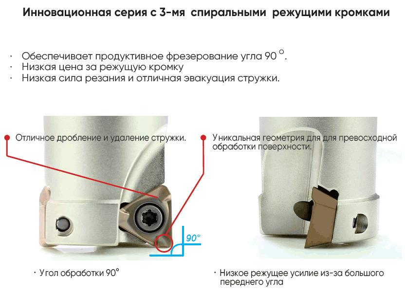 - Уникальный дизайн геометрии для получения высокого качества поверхности.