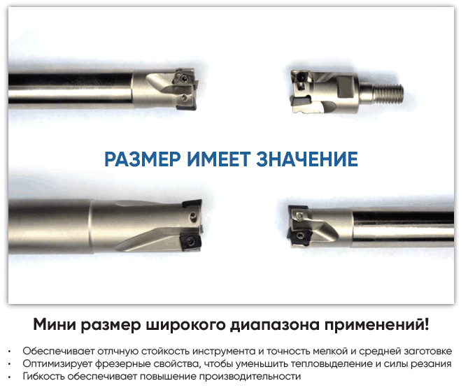- Низкое усилие резания - позволяет использование даже на маломощных и компактных машинах, с BT30.